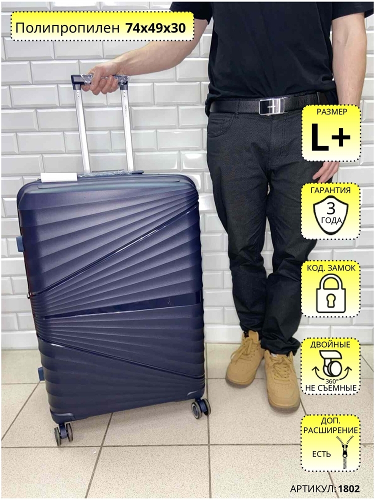 Чемодан на колесах полипропилен с Гарантией 3 года. Сборка Россия. Ручка выдвижная металлическая , 3 положения на любой рост, а мягкая доп. ручка очень приятна на ощупь. Колеса 4 шт, прорезиненные и тихие, на стальных подшипниках , вращение 360 градусов. Замок кодовый. Внутри: ремни держатели, карманы на молнии. Габариты указаны с учетом колес. Подробные характеристики указаны на главном фото. Чемодан с замком - идеальное сочетание стиля и функциональности для путешественников всех возрастов и предпочтений. Имеет набор функций. Большой и вместительный, он представляет собой легкий и удобный способ для хранения и перевозки вашего багажа. Этот трансформер используется как сумка дорожная и доступен в многих размерах, начиная от компактного чемоданчика и заканчивая просторным XXL-вариантом объемом в 120 литров. Благодаря складному дизайну, он легко превращается в практичный рюкзак или даже сумку-чемодан, как коробка, подходящая для разнообразных ситуаций. Вы можете купить как Л, так и Л+. Отсеки для документов. Материал из полипропилена обеспечивает ему ударопрочность и долгий срок службы, как силиконовый , а код с защитой гарантирует безопасность вашего багажа. С четырьмя вращающимися колесами, он маневрирует с легкостью, обеспечивая комфортное передвижение в любых условиях. Рассчитан как на 20 кг, так и на 23 кг вещей. Для модниц доступны женские модели xl, отлично подойдут для девочек. декорированные стильными аксессуарами и косметикой. Для мужчин предусмотрены мужские варианты, сочетающие в себе практичность и элегантность. Комплекты и различные виды позволяют выбрать идеальный вариант для любого путешествия. Сумка-чемодан каталка на колесиках есть как в L, так и в L+ - это не просто удобный аксессуар, но и стильное дополнение к вашему образу в пути как для подростков так и для мальчика. Надежный и легкий, подарит беззаботность и уверенность .