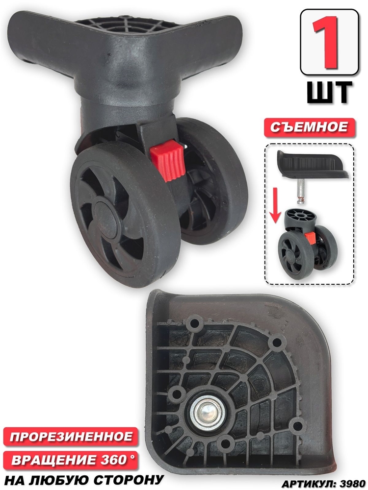 Колесо для чемодана двойное съемное + основание (сторона: любая) 1шт