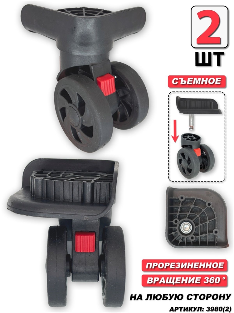 Колесо для чемодана двойное съемное + основание (сторона: любая) 2шт
