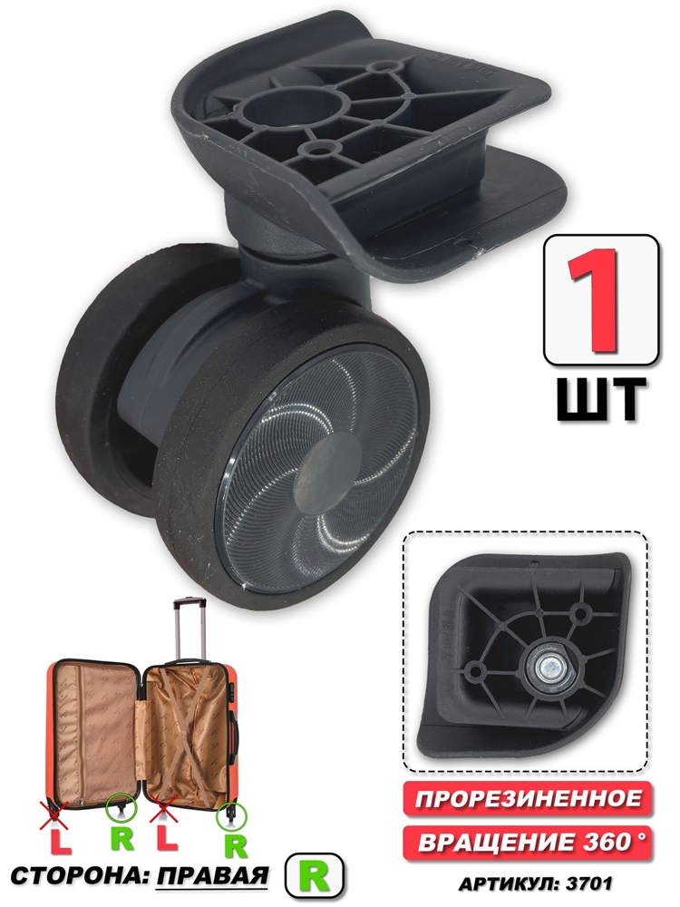 Колесо для чемодана в сборе (основание+колесо). Размеры указаны на фото. Вращение 360 градусов, стальные подшипники, прорезиненные. Колесо для чемодана – это ваш незаменимый помощник в поездках. Заставьте ваш чемодан "ехать как по маслу” с новым съемным колесом для чемодана. Это не просто колесо - это инновационное решение вашей проблемы. Оно идеально подойдет для чемодана любого размера, а благодаря надежному креплению, его установка не займёт много времени и сил.